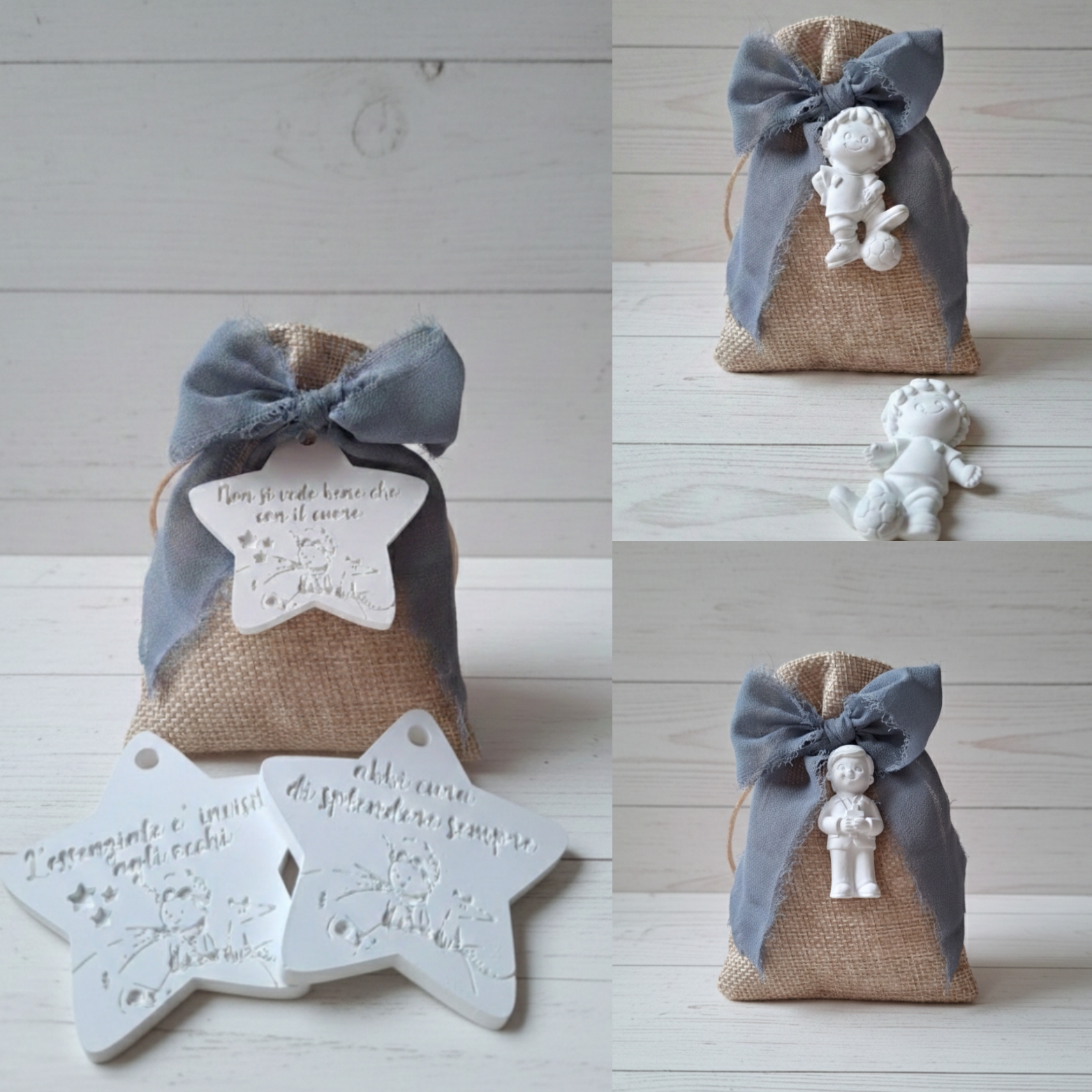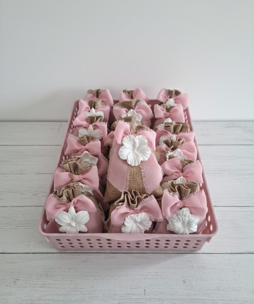 • Sacchetto bomboniera con fiori in gessetto profumato