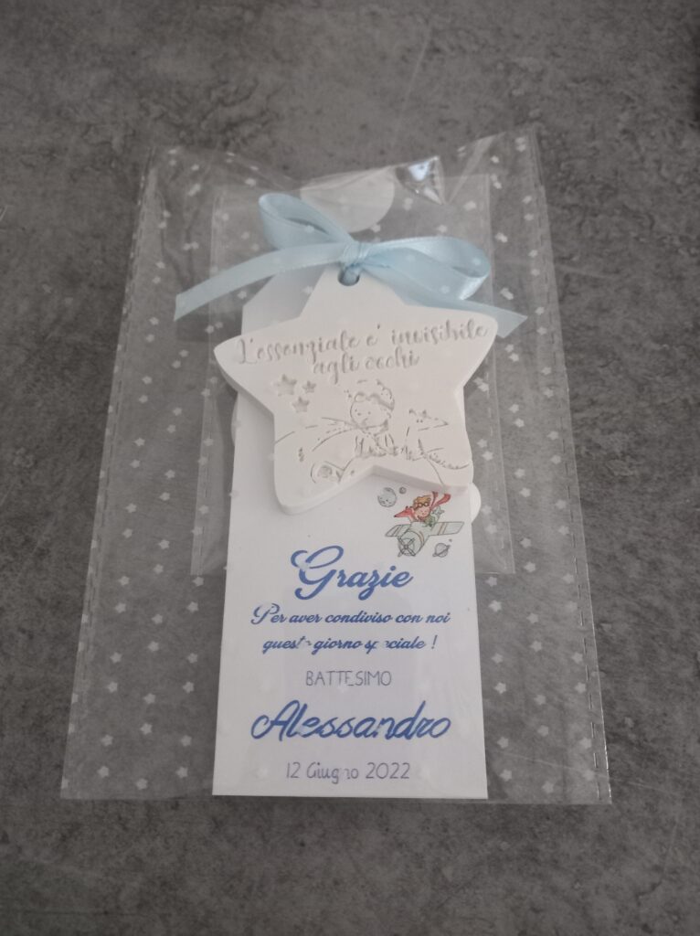INFO E COSTI NEL SITO: https://www.francescabomboniere.com/prodotto/bomboniera-piccolo-principe-stelle-frasi-in-corsivo