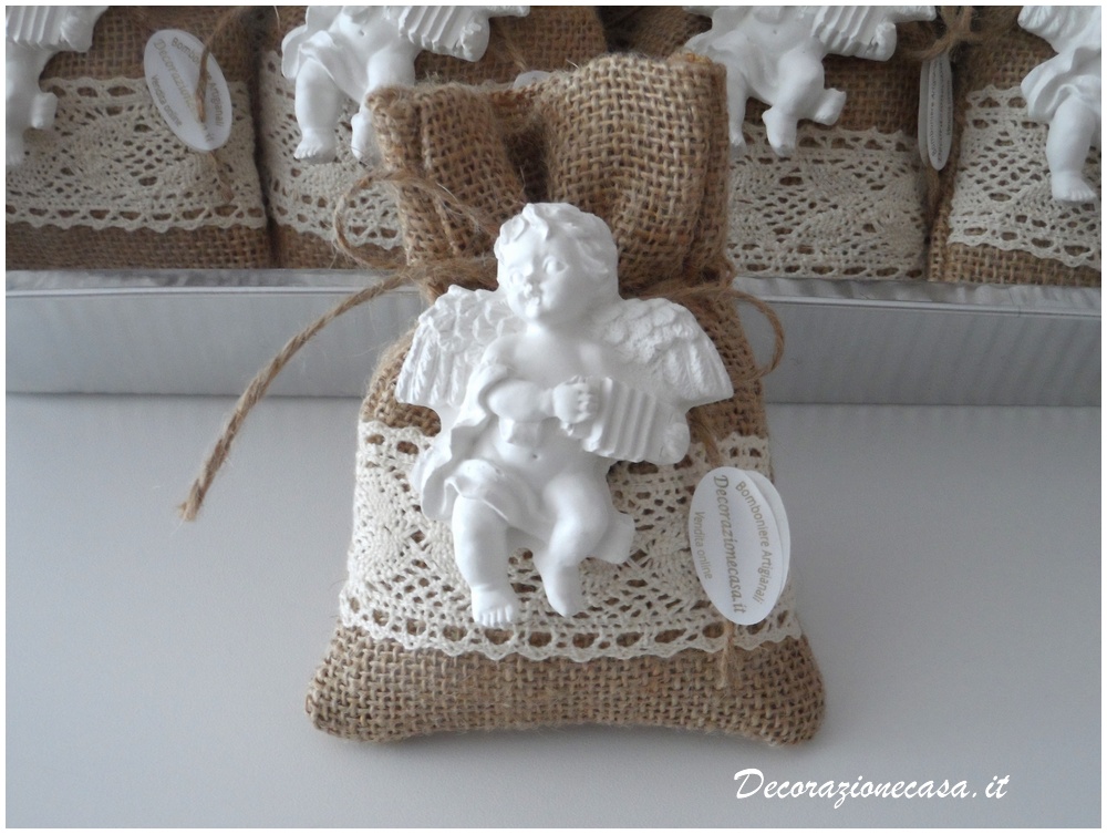 Sacchetto juta con angioletto in gesso profumato. Bomboniera comunione realizzata su richiesta da Fulvio da Bologna.