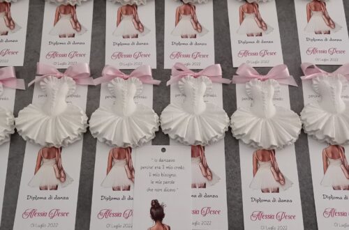 Orsetto in gesso con nastro in schiffon