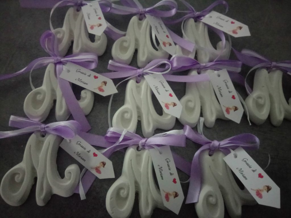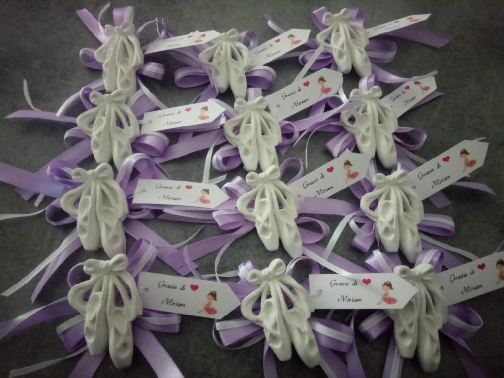 Segnaposto comunione tema danza in gesso profumato, con tag di ringraziamento personalizzato per Miriam da Catanzaro. Comunione Giugno 2020