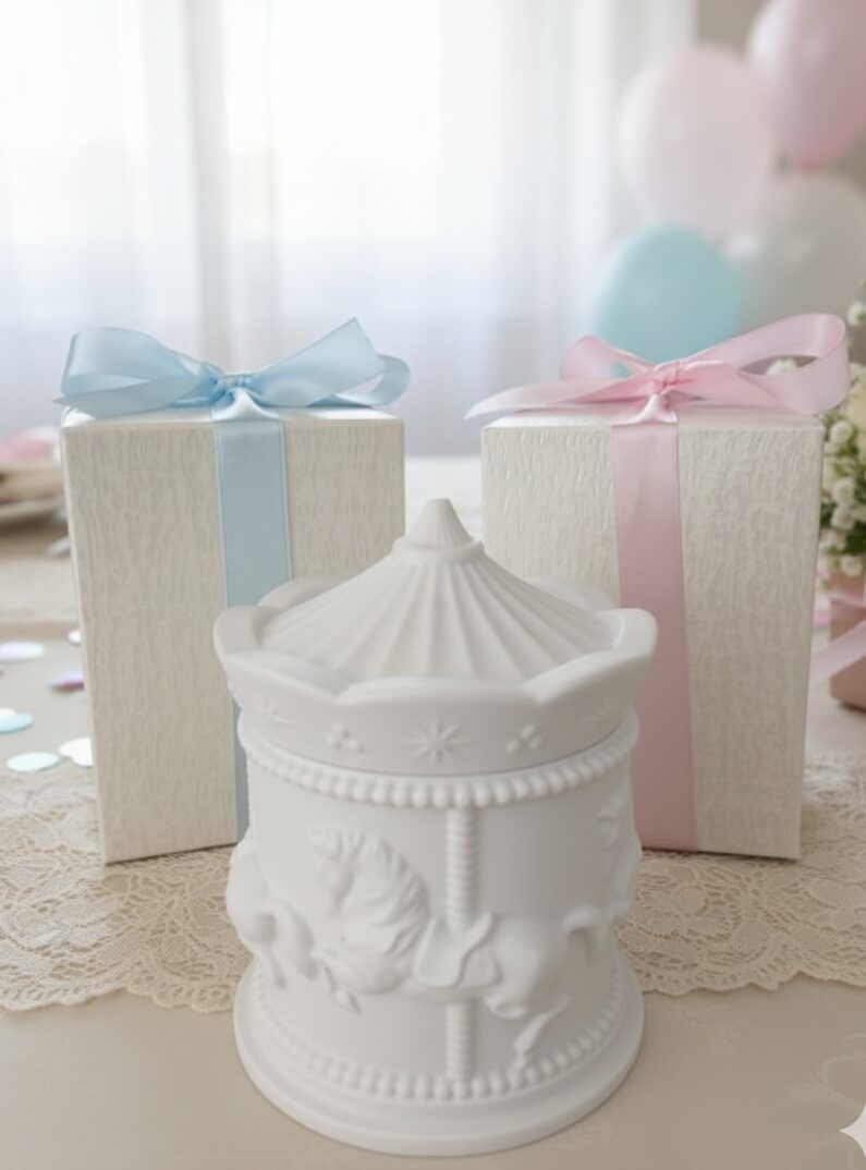 Bomboniera Carosello Portagioie Shabby Chic in Gesso ceramico