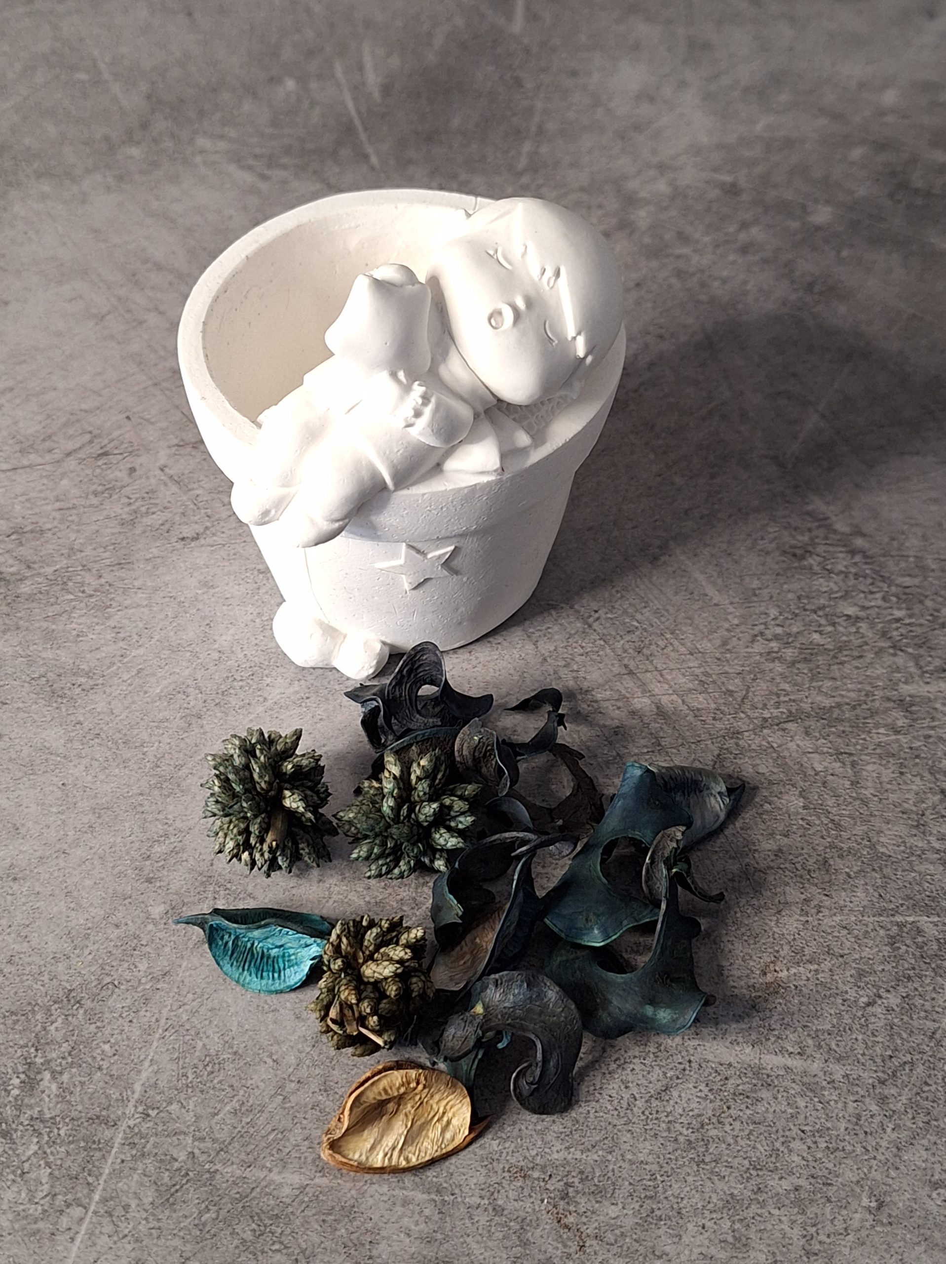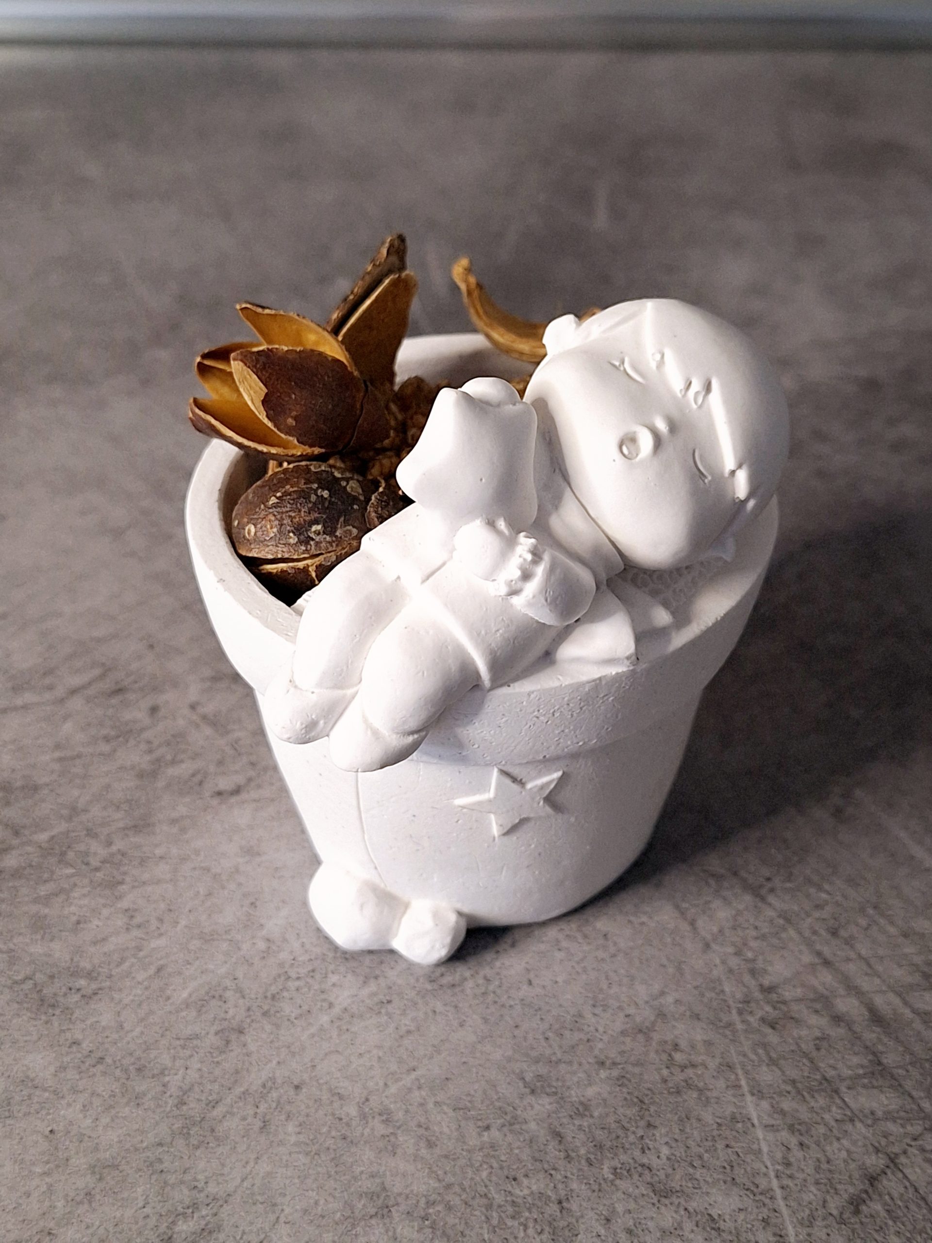 Piccoli fori e imperfezioni sono dovuti al naturale processo di solidificazione del gesso, una caratteristica inevitabile di oggetti artigianali, realizzati a mano