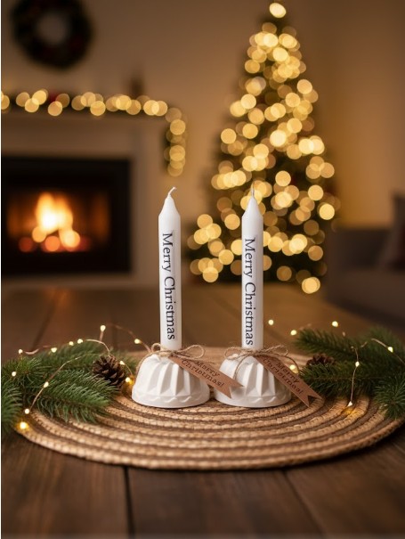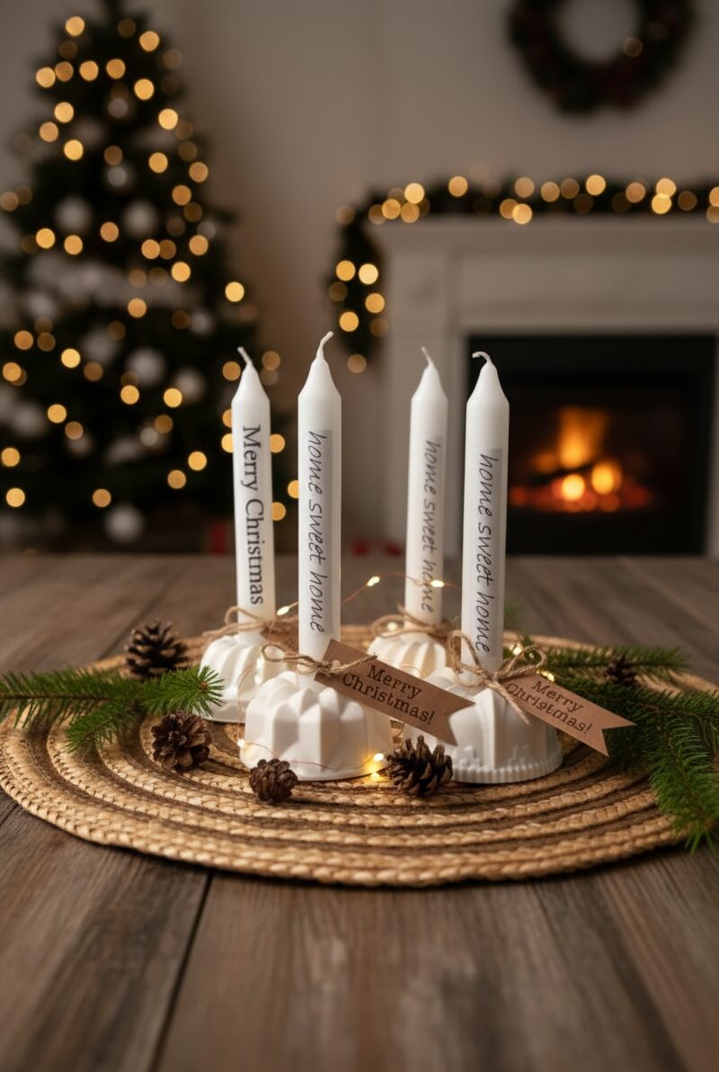 Candela bianca personalizzata con scritta messa con tecnica del decoupage.