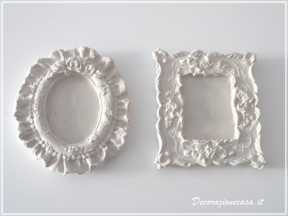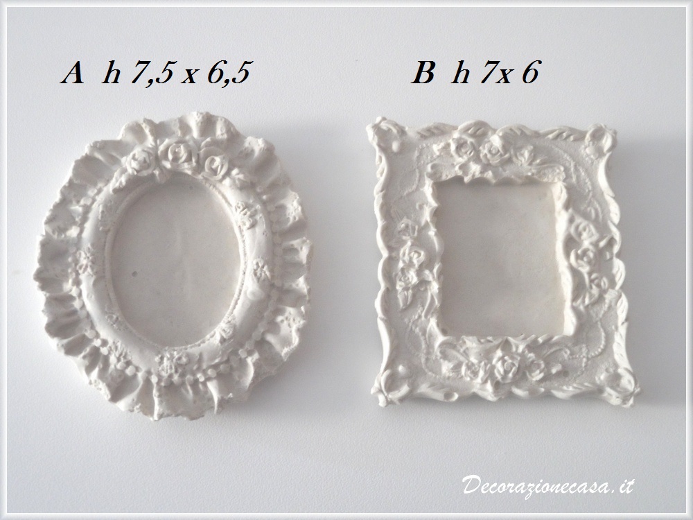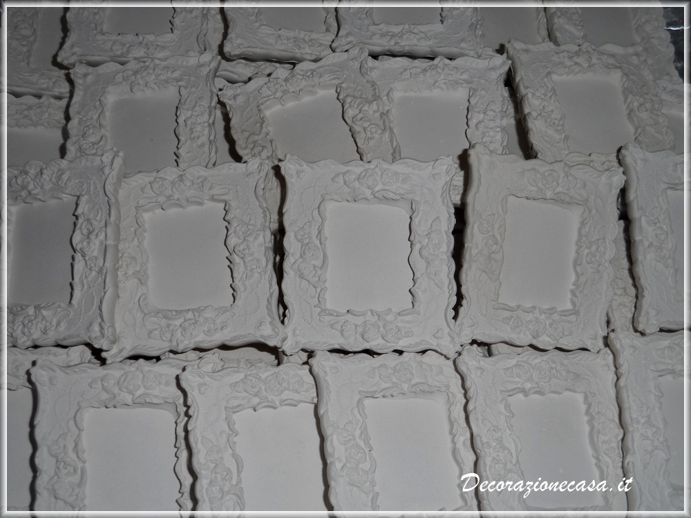 Piccole cornici gesso profumato in stile barocco, ideale come segnaposto o bomboniera