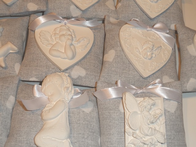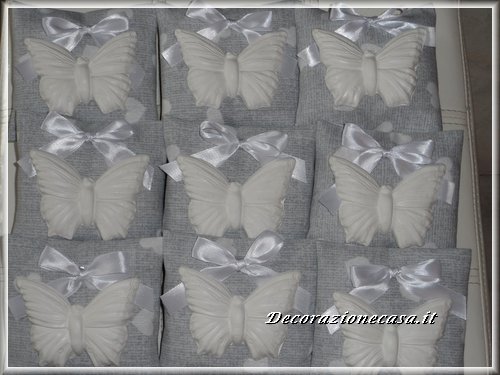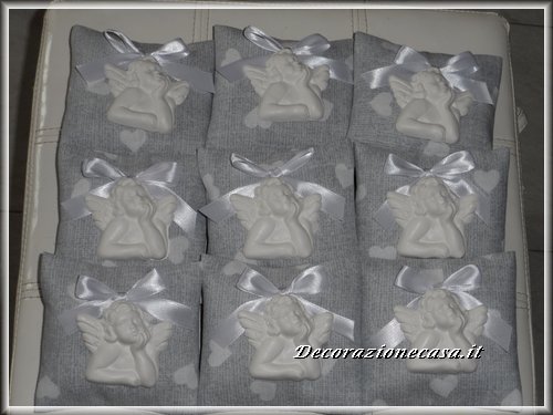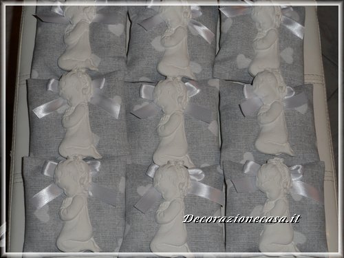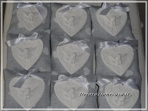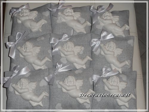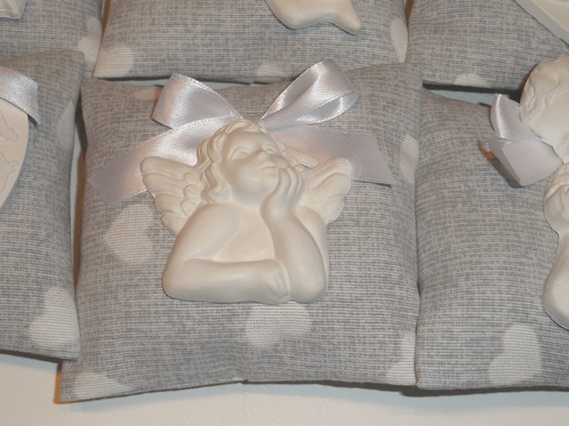 All’interno del cuscino ci sono 5 confetti in bustina di plastica.
