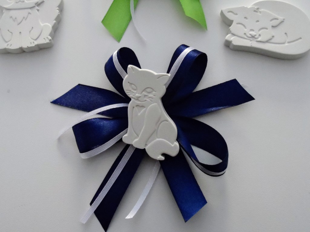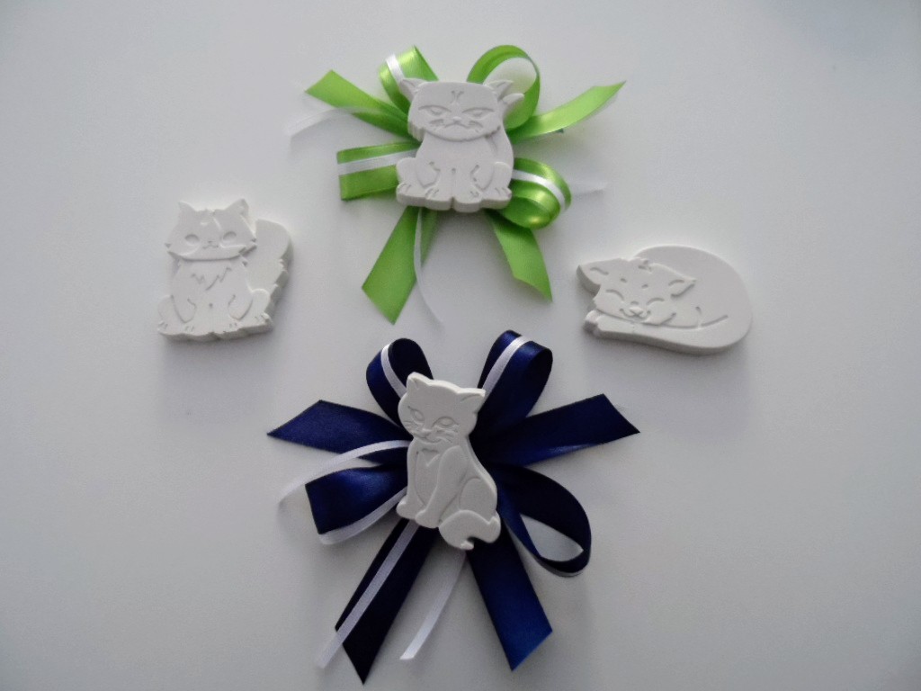 Gattini segnaposto in gesso profumato con nastro in doppio raso.