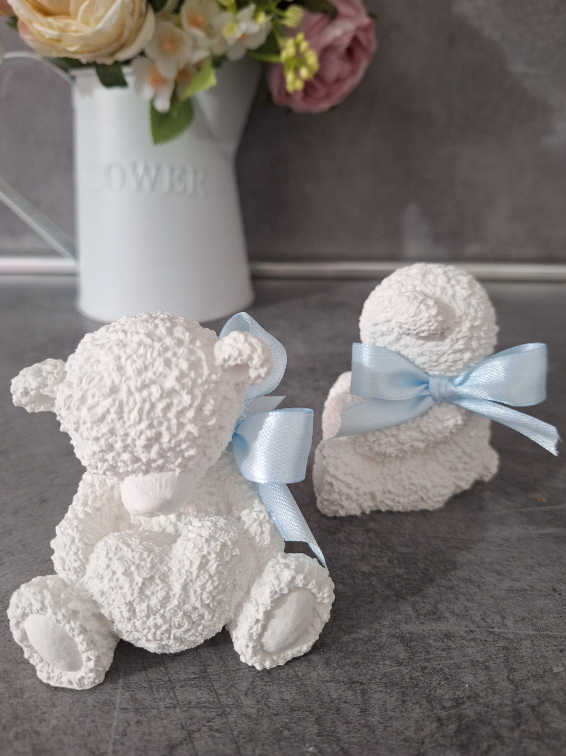 Orsetto in gesso profumato cuore con Nastro in doppio Raso