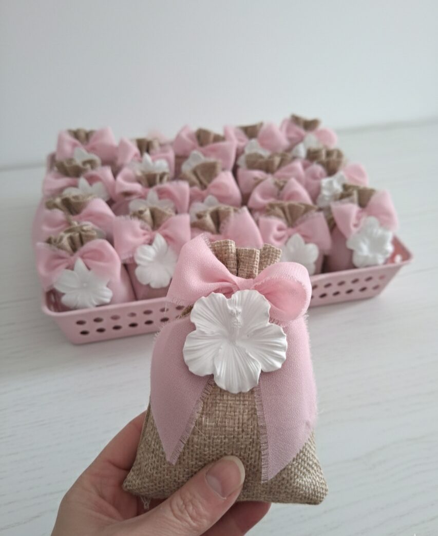 Sacchetto bomboniera con fiori in gessetto profumato