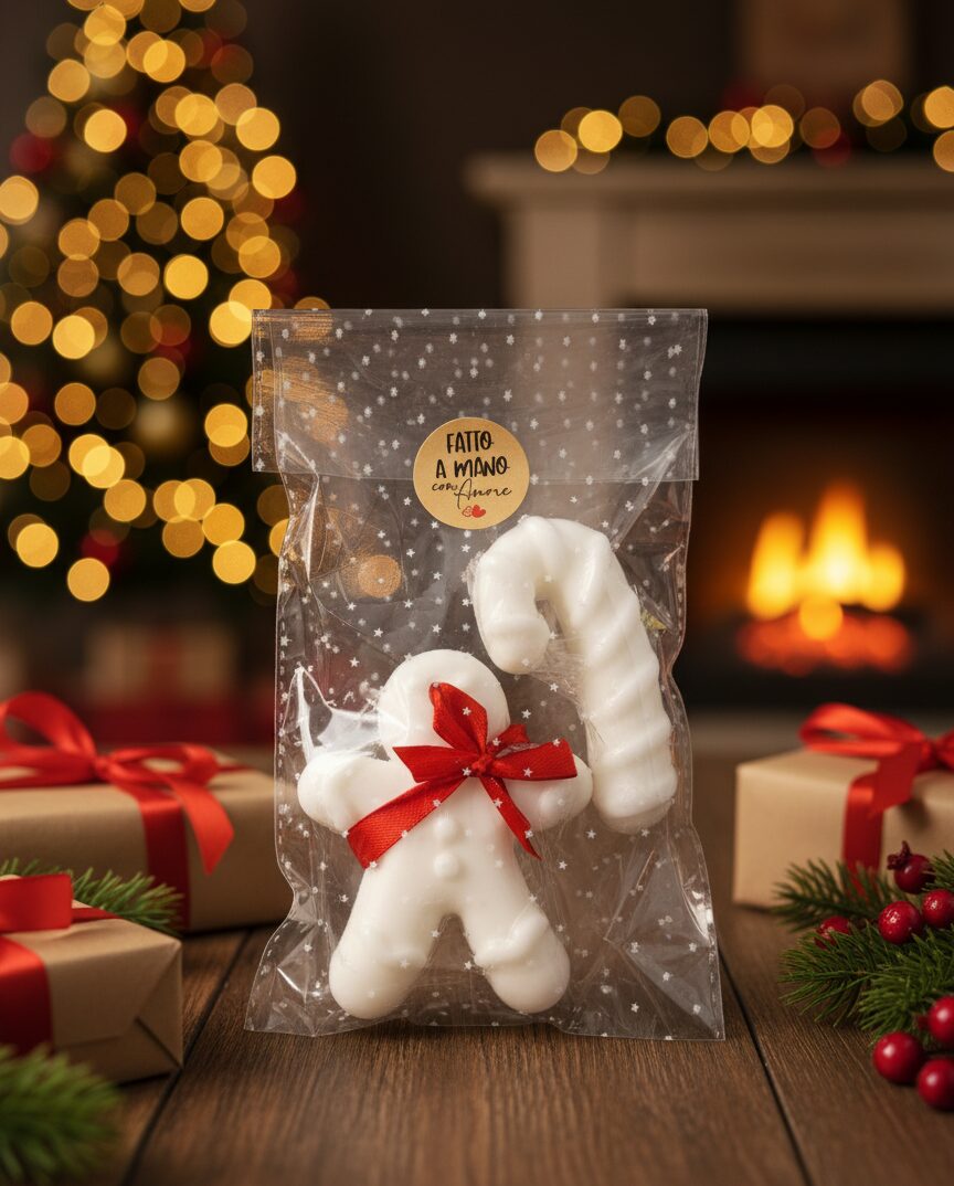 Soggetti Natalizi Artigianali: Ogni saponetta è stata colata a mano negli appositi stampi.