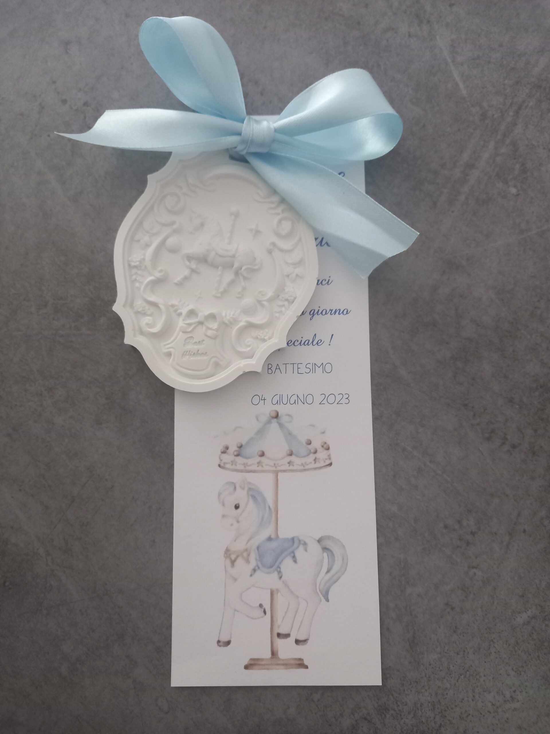 Segnalibro battesimo con medaglione cavallino in gesso
