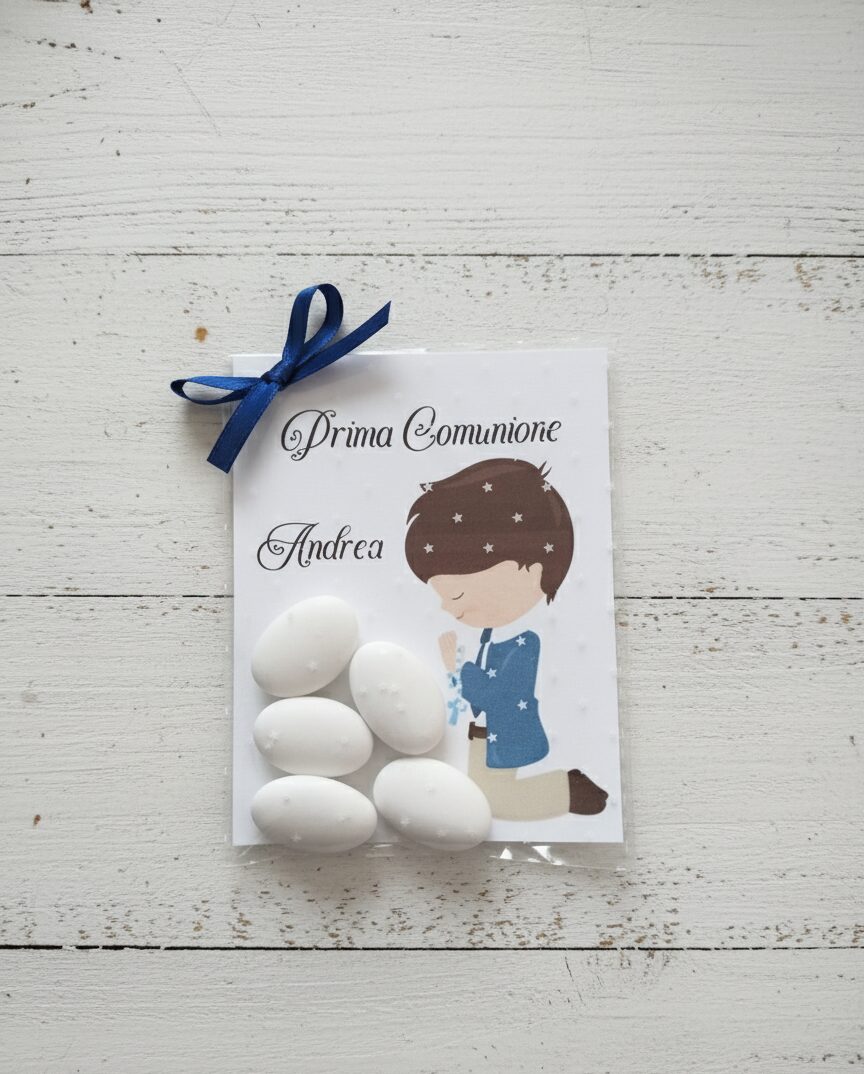 Segnaposto prima comunione Bimbo 5 confetti