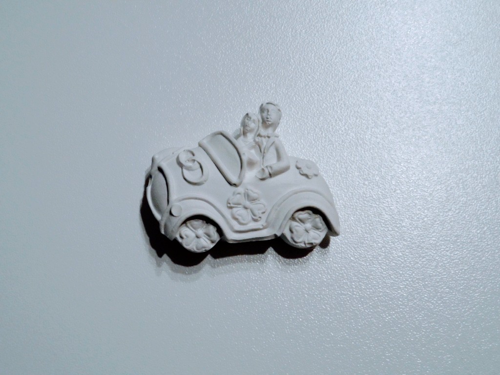 Sposini in macchina in gesso profumato,da usare per le vostre bomboniere o come segnaposto matrimonio.