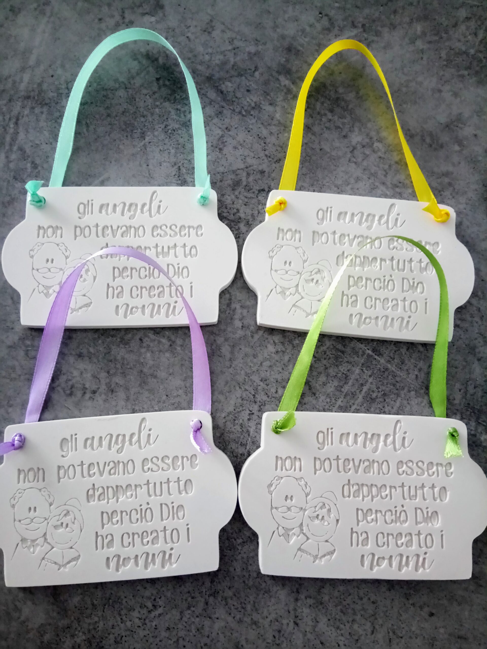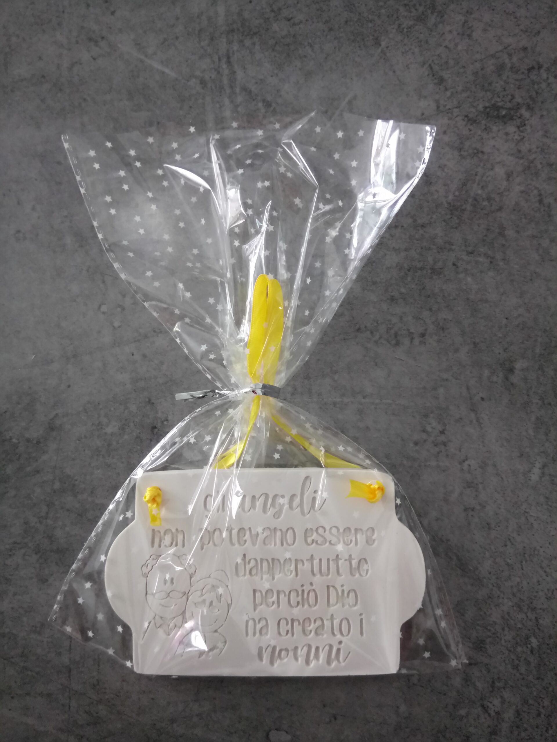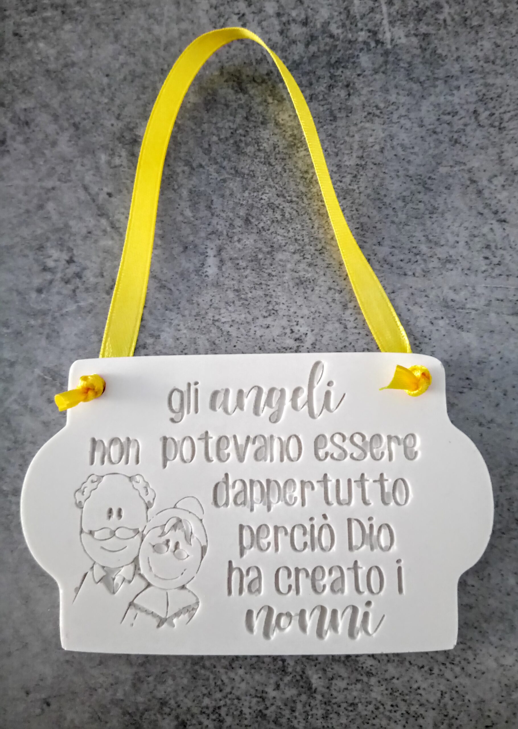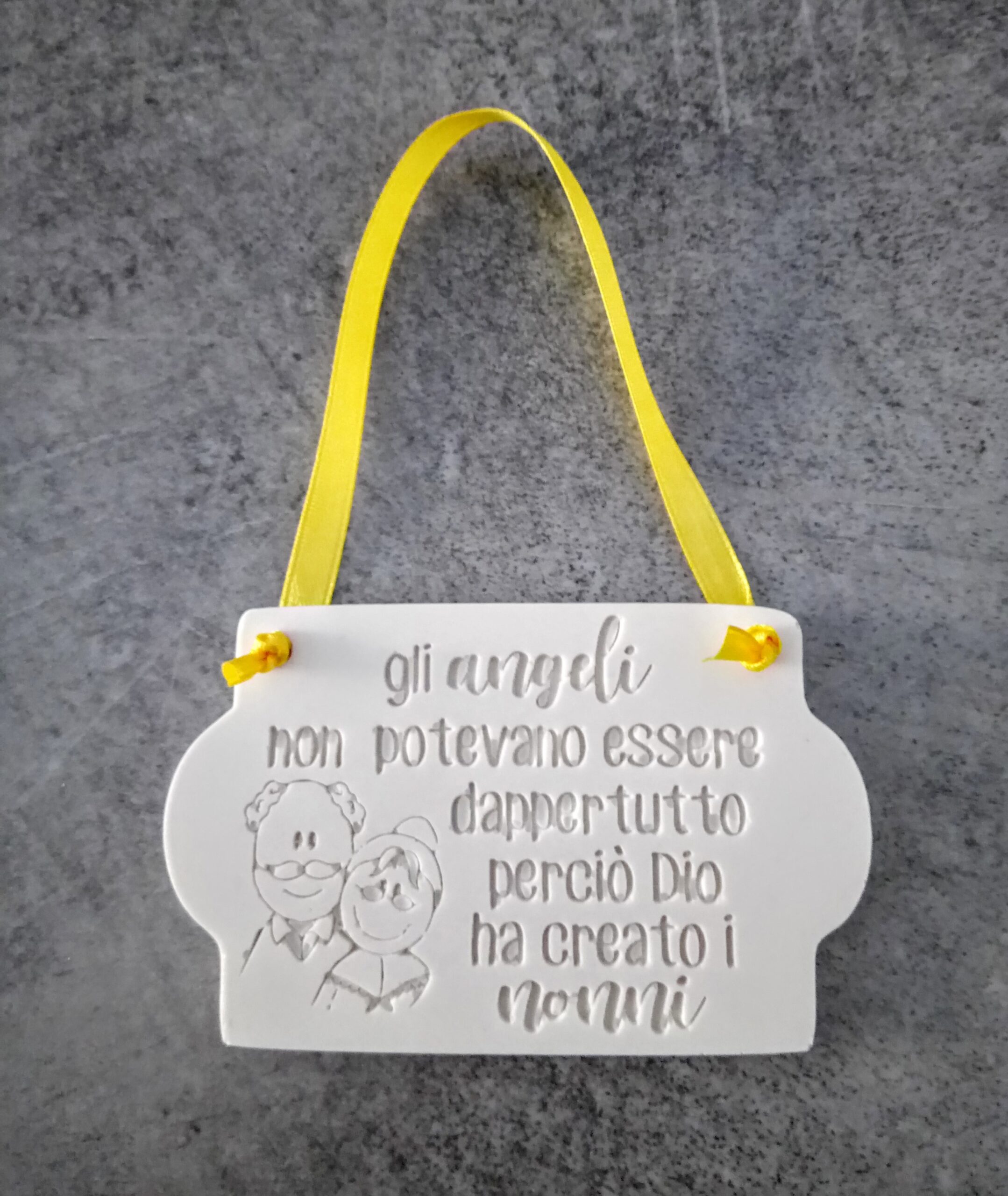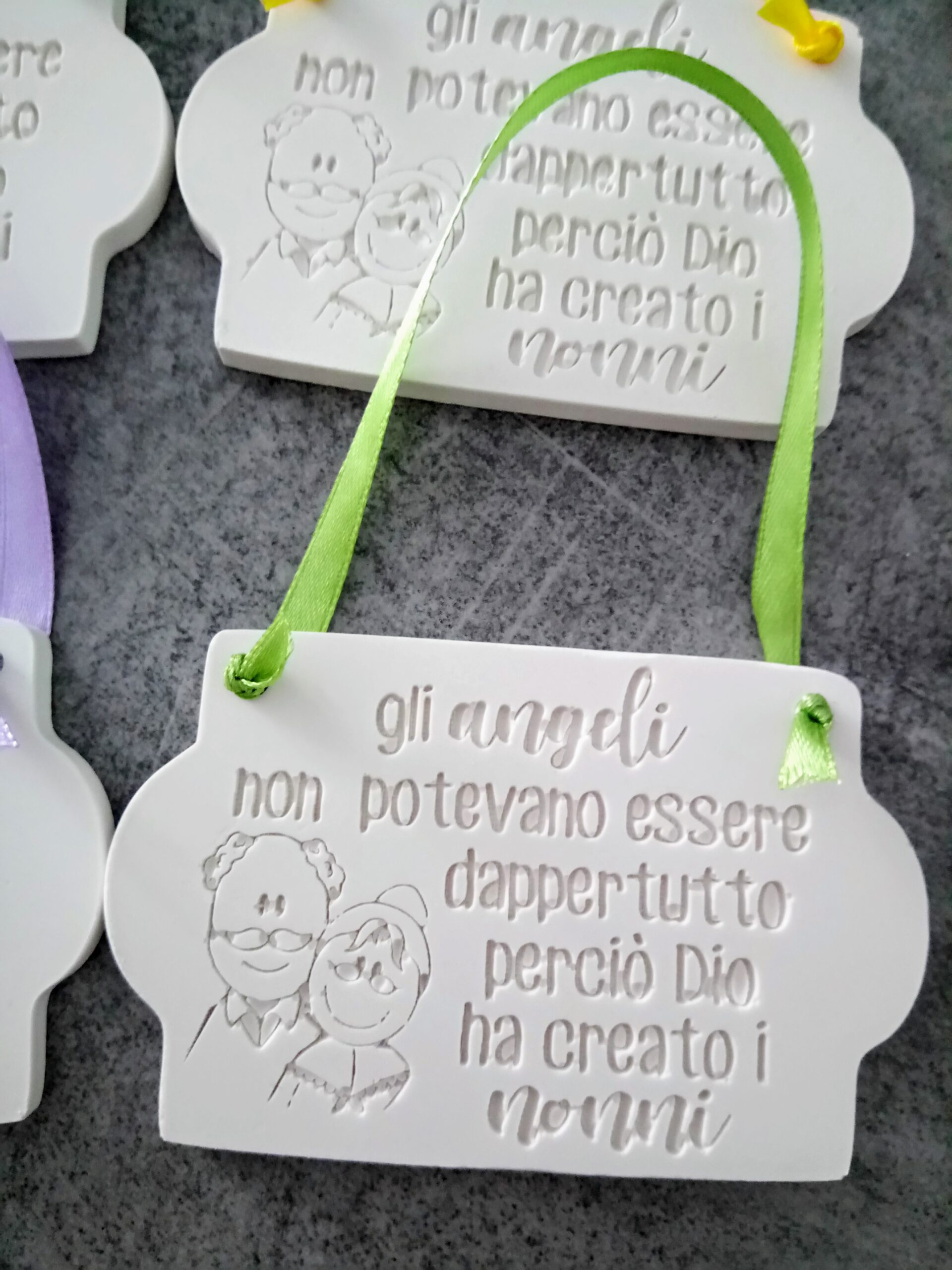 Targhetta nonni realizzata in gesso con nastrino in doppio raso.