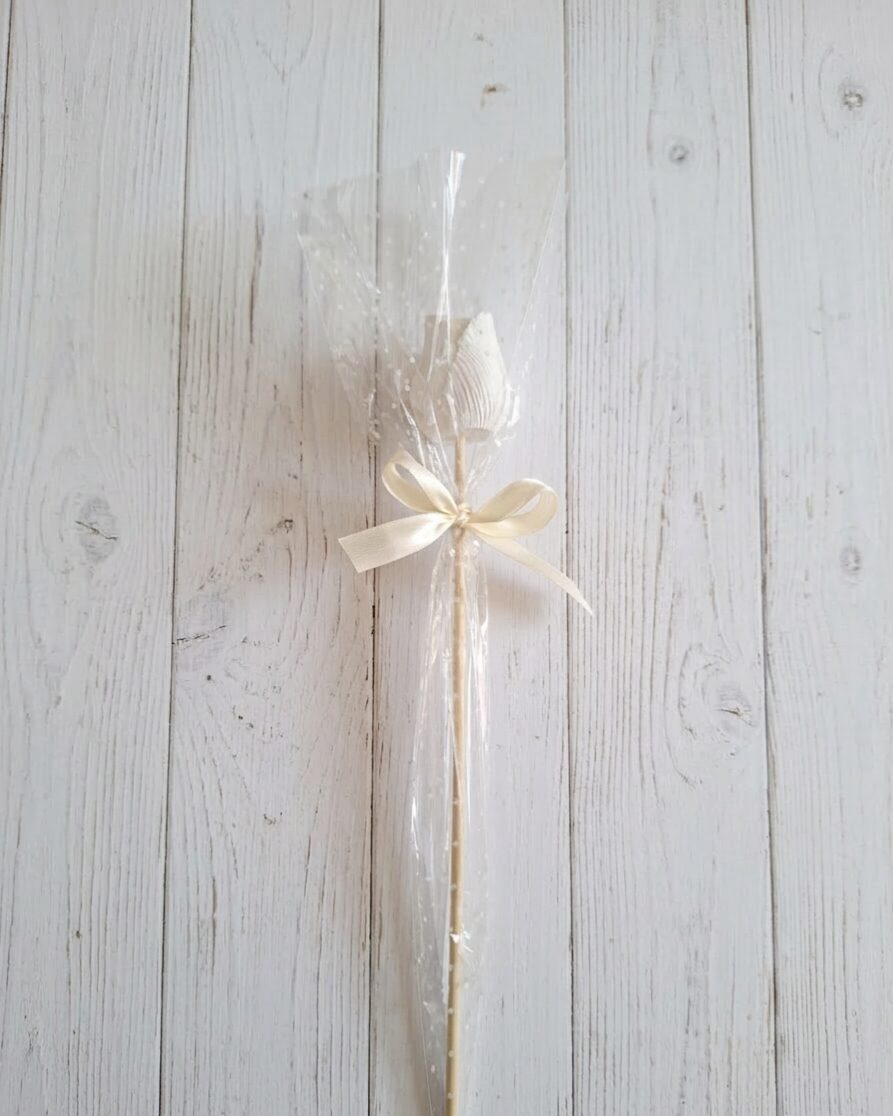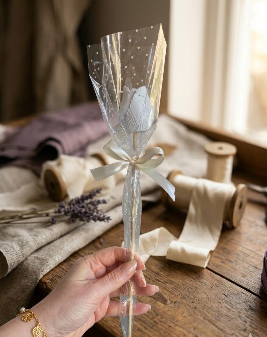 Tulipani in gesso profumato confezionato in carta celofan e nastro in doppio Raso.